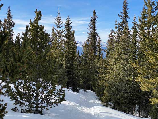 I stayed on the summit for about half an hour to soak in the views. I was hoping to stay longer for better acclimatization but then I decided to use the spare time to ascend Papoose Mountain nearby. This bonus peak looked to be completely forested but it’s officially-named so I had to tag it. After descending back to Chief/Papoose saddle I could not find a set of tracks heading up Papoose Mountain, so I spent a minute or two to don snowshoes.