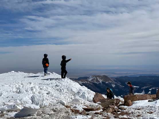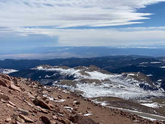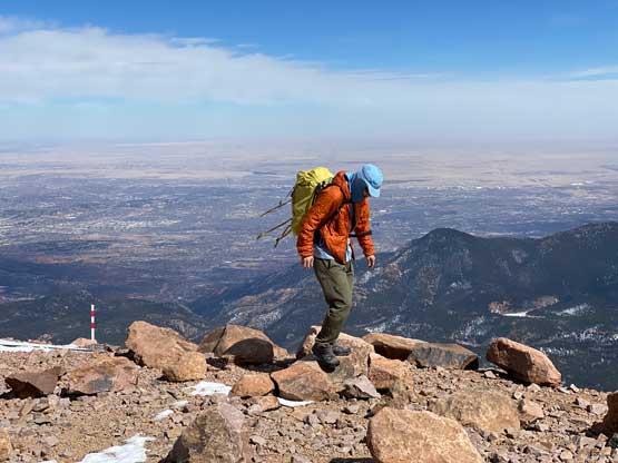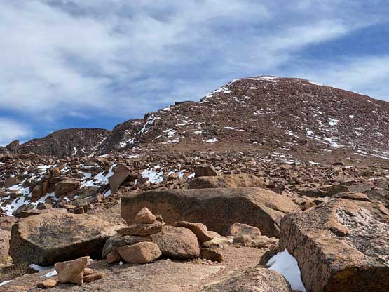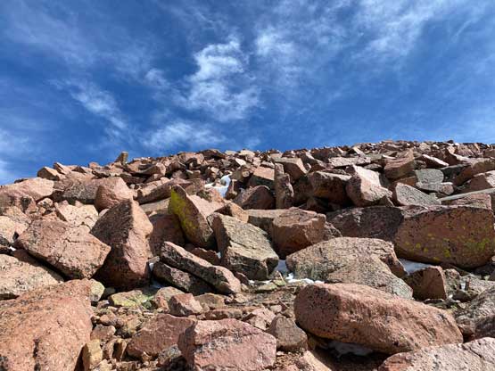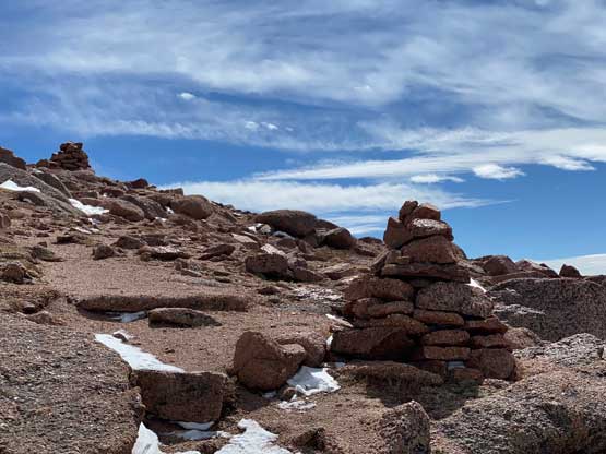 For the rest of the ascent I stuck on the NW Ridge dealing with some endless boulder-hopping. I was initially following paths and cairns but lost them in the maze of boulders. I then just scrambled straight up the boulder field since that appeared to be the most efficient anyway. It seemed like I was doing good in time so I spent about 20 minutes walking around the summit taking photos. With the road closure I thought I would have the summit of Pikes Peak to myself, but that wasn’t the case. Tourists had came up by taking the Cog Railway but on the bright side I got better photos. A few tourists looked to be definitely “Instagram girls” so I asked them to take my summit pictures.