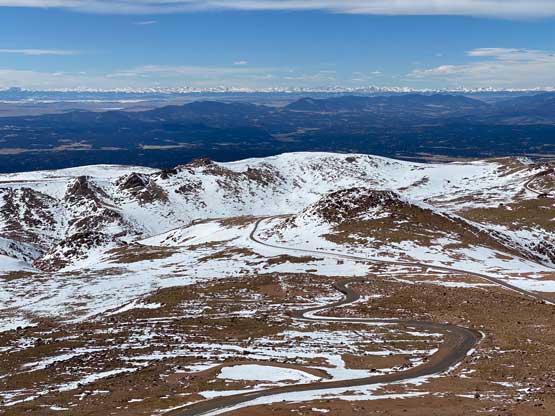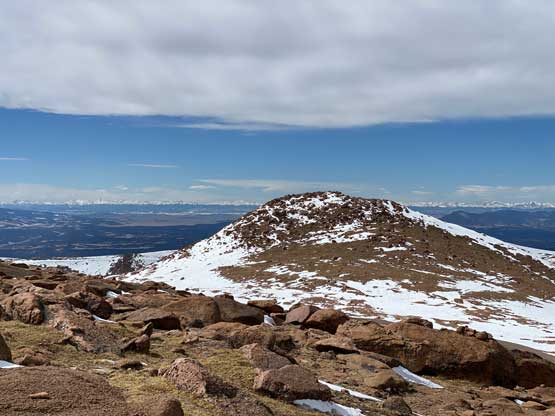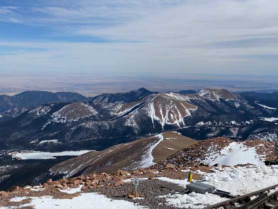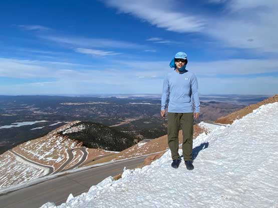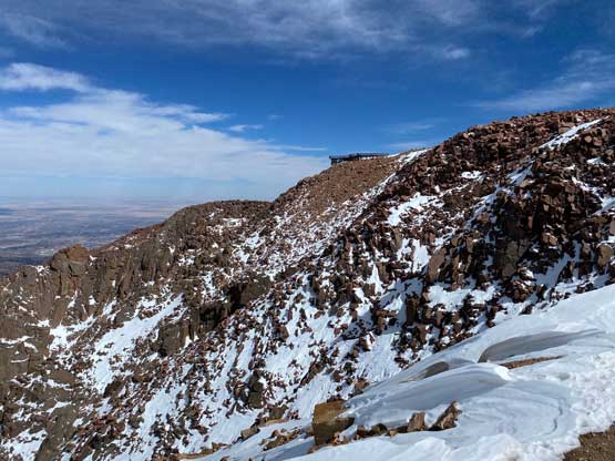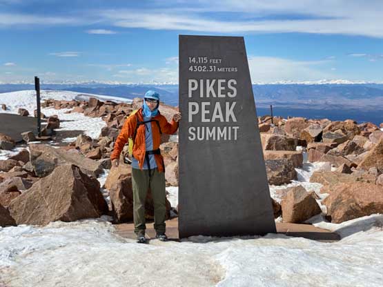 Pikes Peak is a fabled 14er in Colorado and might actually be one of the few peaks in U.S. that sees zillions of “ascents” per year. There’s a Cog Railway that runs all the way to the summit as well as a paved road so tourists do not need to hike anywhere to make the summit of this mountain. The road is reported to open year round but it’s never guaranteed to open all the way to the very top. The Cog Railway is much more reliable as it’s much less subjected to the weather elements. For purists there is Barr Trail that ascends over 2000 m on the east side. If I were a Colorado veteran then Barr Trail is the one-and-only route I would consider for this objective. Unfortunately I do not live in Colorado and my vacation time is very precious. I ended up driving most of the way up but hiked the remaining 4 km distance and 250 m elevation gain (with some up-and-downs) to the summit.