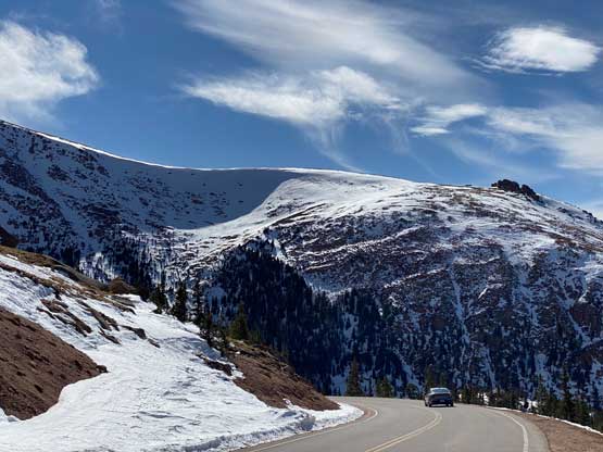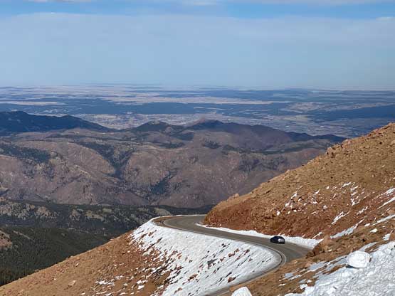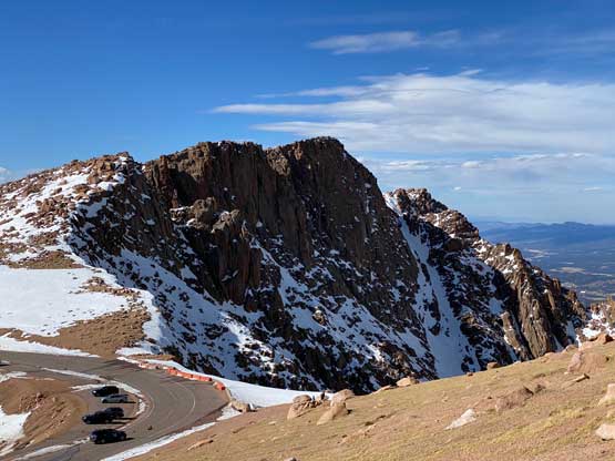 On the descent I went straight down the south slopes on boulders to cut onto the road and followed the road a long ways back to the lower trails where things were more defined. I then retraced by route back across the NE slopes of “Little Pikes Peak” and got back to the road closure gate with 15 minutes of spare. I was power-walking most of the descent and to my surprise I actually felt okay considering this was my second 14er summitted in the day and I had not actually properly acclimatized yet. I ended up being the last person starting the downhill drive and I also stopped a few times on various viewpoints to fully soak in the experience.