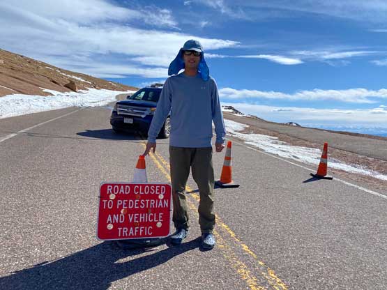 Earlier in the day I had ascended Mt. Elbert in 7 hours round trip and got back to the vehicle at 10:30 am. As I were descending Mt. Elbert I made the decision to rush everything to tag Pikes Peak on the same day. This day had the best weather forecast out of the 5 days I planned to spend in Colorado so I must make the most use of it even though I was downright exhausted from the non-stop travelling and hiking. The drive between the two peaks should take 2 hours but took me 3 hours as I needed one rest break. I then followed Google’s direction to turn onto Pikes Peak “highway” and bought the day-pass at the entrance gate. The latest time to start the downhill driving was 4 pm and they enforced it very strictly with 500$ fine if failing to do so. I thought about to drive to Boulder Park which is basically the last spot to park before the summit, but they closed the road not far past Devil’s Playground. My initial thought was “oh crap” but then I checked the maps and time. It would be a close fight but it’s definitely possible to hike to the summit and get back by 4 pm so I had to at least try. The signs and the police were saying that “no hiking on the road” so I had to take a cross-country path which ended up being actually quite efficient.