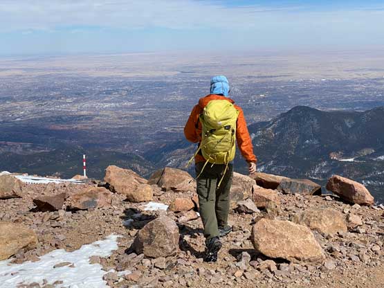 For the rest of the ascent I stuck on the NW Ridge dealing with some endless boulder-hopping. I was initially following paths and cairns but lost them in the maze of boulders. I then just scrambled straight up the boulder field since that appeared to be the most efficient anyway. It seemed like I was doing good in time so I spent about 20 minutes walking around the summit taking photos. With the road closure I thought I would have the summit of Pikes Peak to myself, but that wasn’t the case. Tourists had came up by taking the Cog Railway but on the bright side I got better photos. A few tourists looked to be definitely “Instagram girls” so I asked them to take my summit pictures.