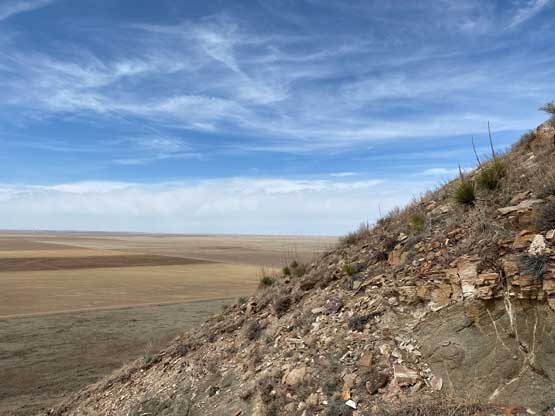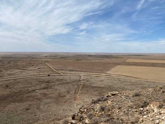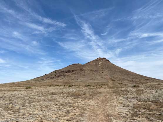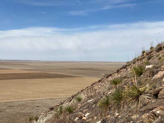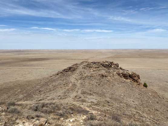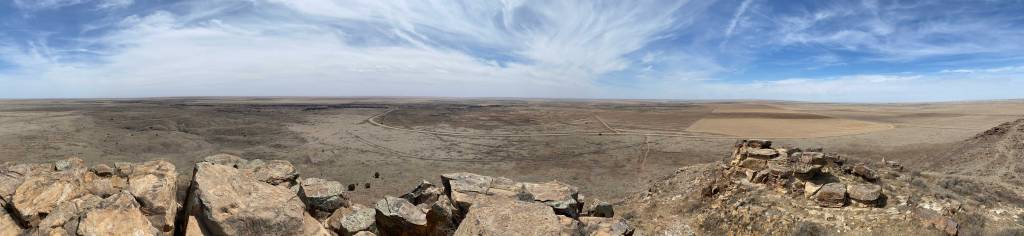 Two Buttes locates in the far SE corner of Colorado sticking a mere 100 m above the flat grasslands. This “peak” is known as the lowest ranked summit (100m prominence) in Colorado and it’s also a county high point. Of course when I pulled the spontaneous trigger to ascend it I knew nothing about these. I simply saw this peaklet while driving northwards up SR385 and my initial thought was “that thing must have more than 100 m prominence”. I pulled out the peakbagger app while driving and sure it has. It also has an official name, so I pulled over and did a quick research. My original plan was to drive straight to Kansas High Point but I figured this little detour wouldn’t cost more than an hour, so why not…