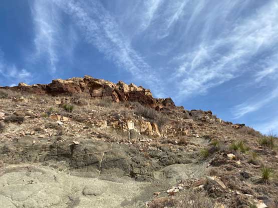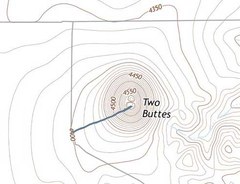 I turned onto some dirt roads and drove as close to Two Buttes as possible and parked the rental car in front of a gate on the SW side. The gate was locked meaning this peak must locate in someone’s private property. I spent as little time as possible to don some hiking gears, hopped across the gate and dashed for the summit hoping that nobody would catch me. I was very beat from the non-stop driving and peak-bagging in the past 18 days so I could not run up this hill, but I did hike at a faster-than-normal pace. There’s nothing magic about the ascent and soon enough I was celebrating the success. I then jogged down, hopped back over the gate and drove the hell out of this place.