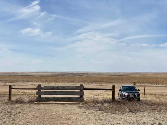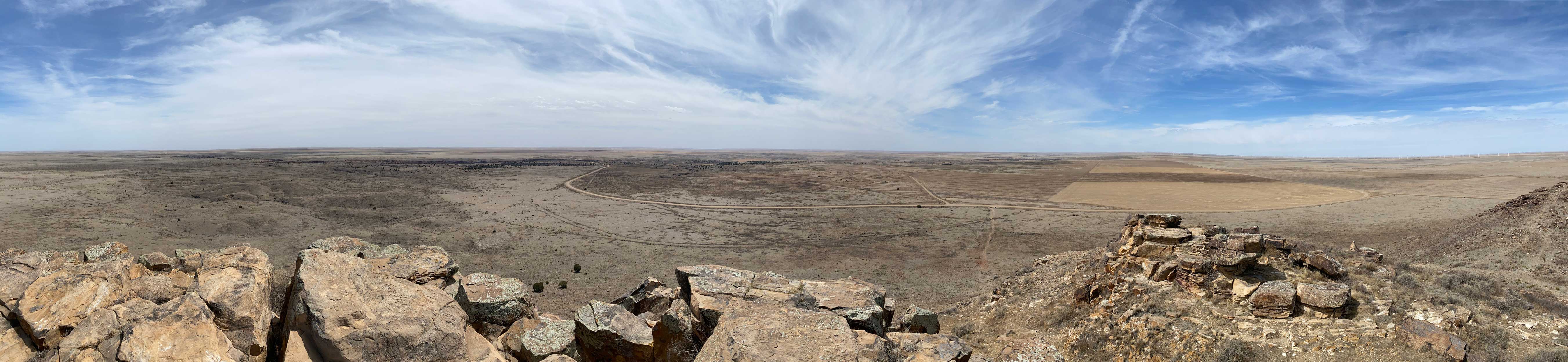 Two Buttes locates in the far SE corner of Colorado sticking a mere 100 m above the flat grasslands. This “peak” is known as the lowest ranked summit (100m prominence) in Colorado and it’s also a county high point. Of course when I pulled the spontaneous trigger to ascend it I knew nothing about these. I simply saw this peaklet while driving northwards up SR385 and my initial thought was “that thing must have more than 100 m prominence”. I pulled out the peakbagger app while driving and sure it has. It also has an official name, so I pulled over and did a quick research. My original plan was to drive straight to Kansas High Point but I figured this little detour wouldn’t cost more than an hour, so why not…