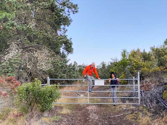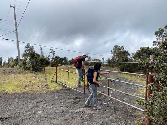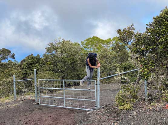 Nikita, Raphael and I decided to stick to the known and attempt Hualalai via the standard route. One report on peakbagger.com indicated that we should start at 6 am or earlier to avoid encountering the authorities and to give plenty of contingencies I decided to start even earlier with head-lamps on. This was the second day of our Hawaii smash-and-grab trip and I made us to wake up at 4:15 am. We had not turned in until 10 pm the night before so waking up wasn’t overall that easy. Taking down the tents also took some time and getting out of the campsite proved to be the first crux of this day as they were strict about the 9 pm to 5:30 am gate hours. This was at Kohanaiki Beach. We had to make up some fake excuses of medical emergencies to let the authority to open the gate for us, and we were still delayed by 15 minutes. Thankfully the drive to the trail-head was short. The trail-head has elevation of 1500 m and was much colder than expected. I ended up changing the shorts to long pants and that was definitely the correct decision. I opted to park right in front of the fence as I didn’t think it mattered much. Whether we parked there or a few hundreds meters down the road it’s obvious that whoever parked the vehicle would be trespassing. The most robust way of getting this summit was definitely to ascend at night and face the consequences only on the descent.
