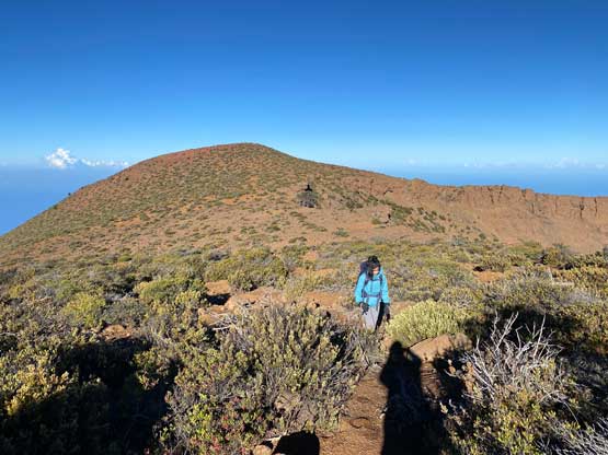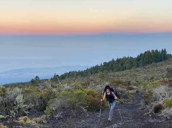 Nikita almost at the summit of Pu’uhonua’ula, looking back