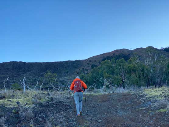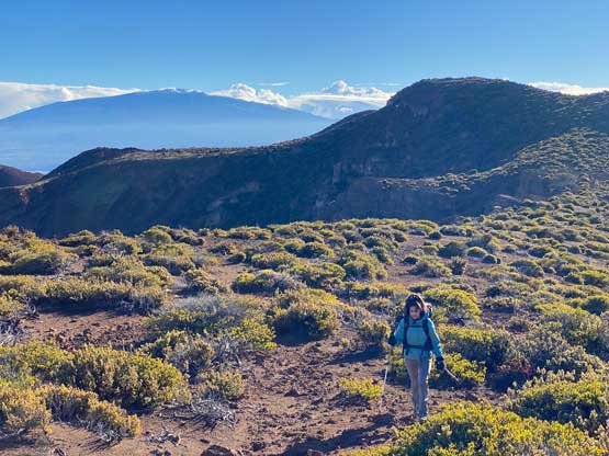 Nikita descending the barren north slopes of Hualalai