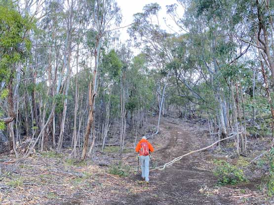 Entering the forest for a while. The downed trees suggested no vehicle traffic
