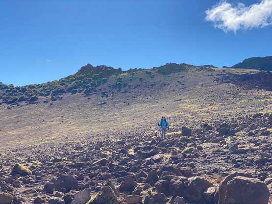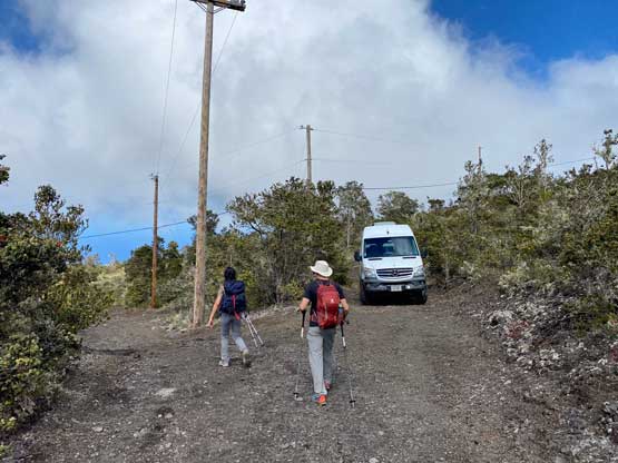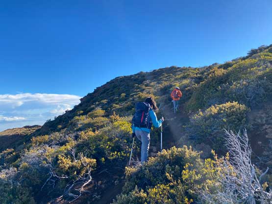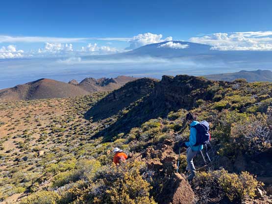 Nikita and Raphael ascending the west slopes of Hualalai true summit