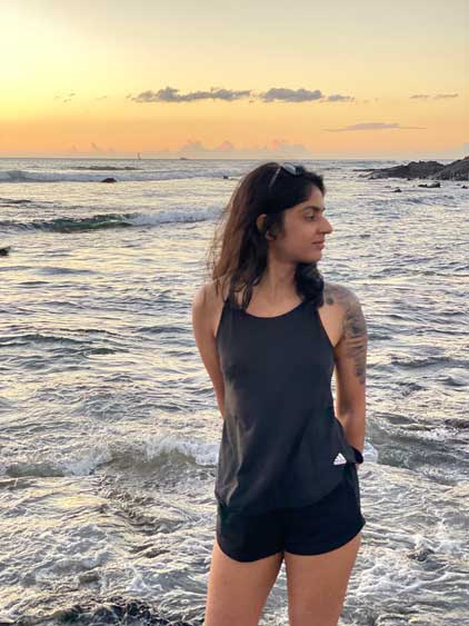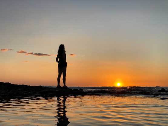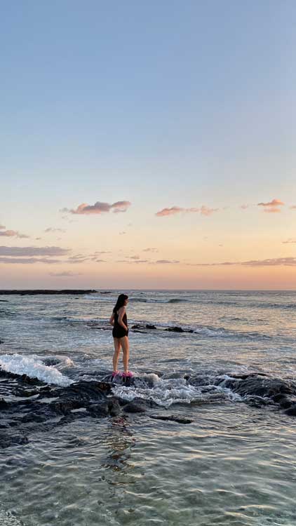 Nikita and the sunset on Kohanaiki Beach