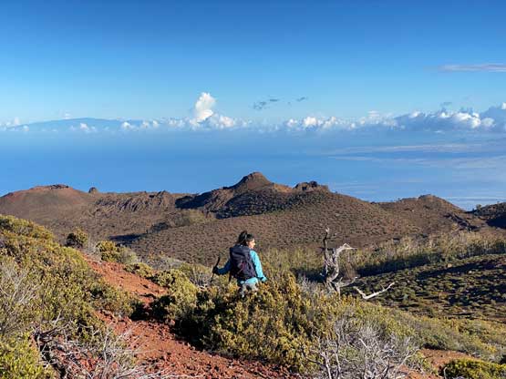 Nikita almost at the summit of Pu’uhonua’ula, looking back