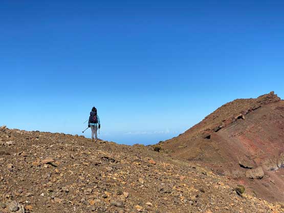 Nikita descending the barren north slopes of Hualalai