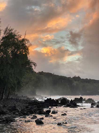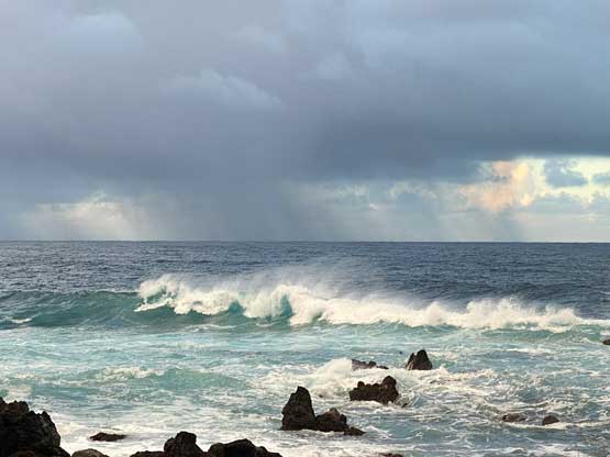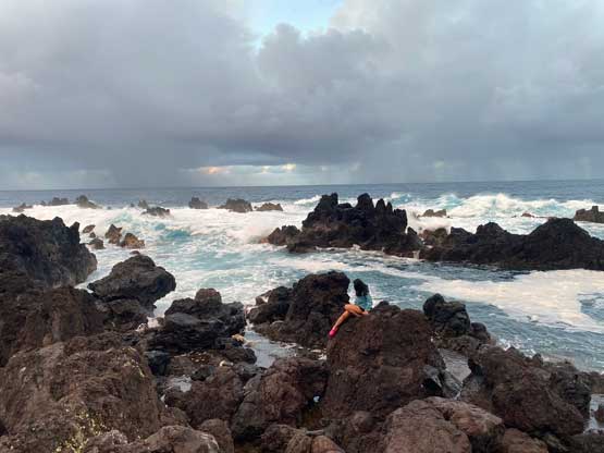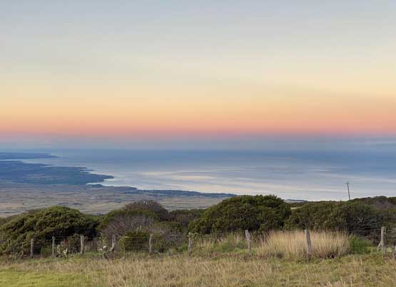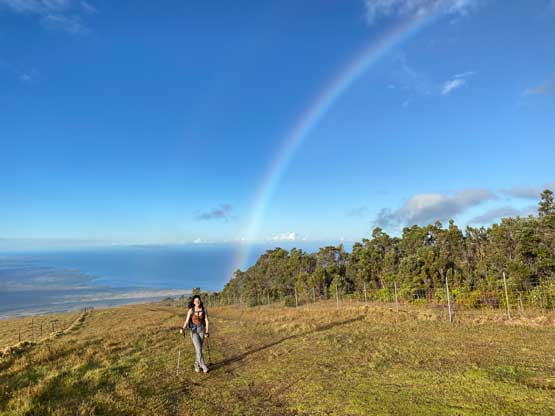 One set of the GPX track (from Sam Grant) had descended a different route so we planned to follow that instead of retracing the fence lines contouring. This descent variation started off nicely by following an abandoned dirt road, but we still had to face that eastwards traverse/contouring at some point. The line we opted to pick involved a lot of post-holing in high grass, a few fences to hop across as well as several deep gullies to scramble into and out of. I could not say whether I definitely preferred our ascent route or the descent route. Each of them had their own merits and downs so pick your poison. The rest of the descent was rather uneventful and as expected, the rain had stopped and the sky had turned blue once we descended into the lower flanks. After finishing the hike we took our time to change to dry cloths and then drove into the town of Waimea for food. While waiting for lunch I ran to the nearby McDonalds (free wifi) and spent about 20 minutes to update my socials. The food was great but the expenses were at least 50% more than in Vancouver. We then drove to Laupahoehoe Beach to prepare for Mauna Kea‘s ascent on the next day.