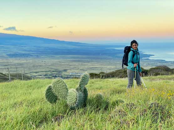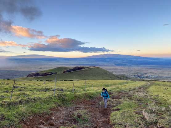 Kaumu o Kaleihoohie is the highest peak in Kohala Mountains on the NW corner of Big Island. This part of the Big Island gets much more precipitation as it’s exposed to the trade wind and because of that, the mountain tops and the windward slopes are covered by dense tropical jungles. An ascent of this peak offers some very different experiences than the typical higher altitude volcanoes such as Mauna Kea and Mauna Loa. Most hikers aren’t even aware of this objective but that’s too bad. You will most likely get soaked through by the jungle, the rain and the mud but the hike is worthwhile. The lower flank of this peak is actually in an arid leeward zone and offers some expansive views. This peak is also one of the 4 peaks on Big Island that boast over 600 m prominence.