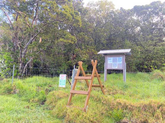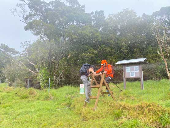 A few times I wondered if we should just hop over the fence into the jungle but managed to resist that temptation. The correct place to bail into the jungle according to the two sets of GPX tracks that we previously downloaded was assured by a wooden ladder and some form of a trail-head sign, reminding hunters/hikers to clean our boots upon returning. I was anticipating an actual trail in the jungle heading to the shoulder of Eke but what we actually found was just a flagged path. The path was not very obvious and would be extremely difficult, if not impossible to follow without the flags. Nonetheless with the combination of the GPX tracks and the flags we somehow managed to stay on route.