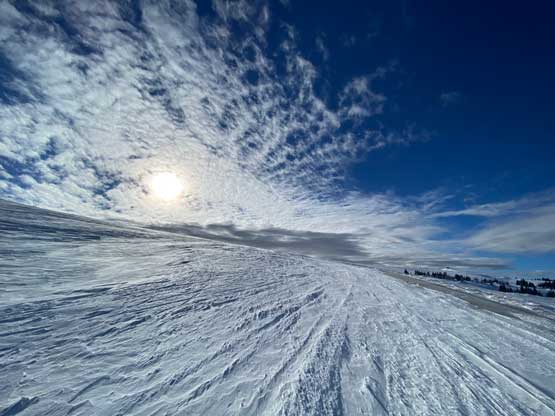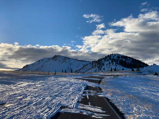 I resumed the driving when it was still dark as I still had a long way to go. I drove through the Boise corridor pretty much during the morning rush hour and the traffic was a bit on the heavy side. The sun finally came out. There was still snow on the ground but the winter-driving finally gave way to some fast cruising. The stretch from Boise to Twin Falls was boring but the speed limit was encouraging, at 80 mph. I then followed the Google’s direction onto the winding road on Mt. Harrison’s eastern flanks. I thought the road would be well maintained to the ski resort but it was apparently not. There was enough snowy stretches that required 4×4 and good tires. I drove another kilometer passed the ski resort to a closed gate where everyone started snowmobiling. This last stretch was not plowed at all but there were enough tire tracks for me to push through, albeit quite sketchily.