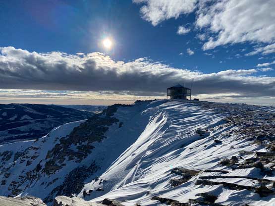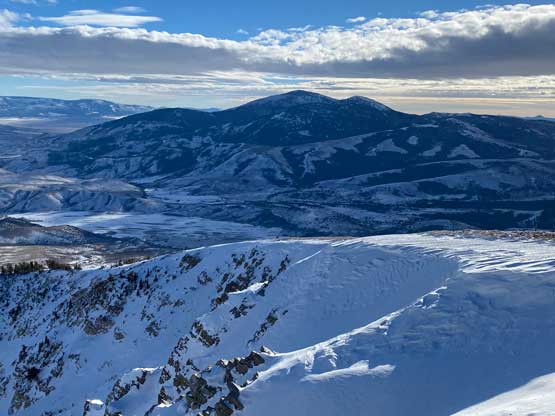 Mt. Harrison locates about an hour’s drive to the south-east of Twin Falls in southern Idaho. This peak is somewhat connected to the much-bigger Cache Peak to the south, but Mt. Harrison itself still boasts over 600 m prominence as well as a recognizable profile. There’s a paved road that goes all the way to the summit and in summer season this peak is a simple drive-up. The road is unmaintained past the ski resort in winter which means about 5-6 km each way of walking. The upper mountain is frequent by snowmobiles so one can use the sled tracks to eliminate trail-breaking.