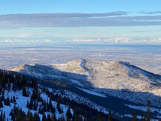 I did this peak as the first objective in this 22-day foray to the SW desert states. I spotted Mt. Harrison on the map along with the ski resort and the paved road. My initial plan was to spend a full day leisurely driving to Twin Falls and get Mt. Harrison done in the morning of Day 2, but I changed my mind after consulting with the weather forecast. The sunshine in Idaho and Utah was supposed to be short-lived and then a prolonged stretch of bad weather would move in after Day 3. I wanted to do Mt. Harrison and a few other summits in the vicinity of Salt Lake City while the weather was still good, and that required me to squeeze this ascent into Day 1. The drive to Twin Falls would take 11-12 hours and with the short daylight time around winter solstice this was surely not an easy task.