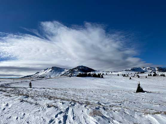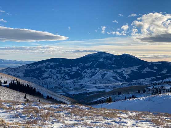 Mt. Harrison locates about an hour’s drive to the south-east of Twin Falls in southern Idaho. This peak is somewhat connected to the much-bigger Cache Peak to the south, but Mt. Harrison itself still boasts over 600 m prominence as well as a recognizable profile. There’s a paved road that goes all the way to the summit and in summer season this peak is a simple drive-up. The road is unmaintained past the ski resort in winter which means about 5-6 km each way of walking. The upper mountain is frequent by snowmobiles so one can use the sled tracks to eliminate trail-breaking.