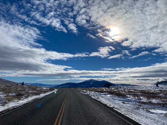 I resumed the driving when it was still dark as I still had a long way to go. I drove through the Boise corridor pretty much during the morning rush hour and the traffic was a bit on the heavy side. The sun finally came out. There was still snow on the ground but the winter-driving finally gave way to some fast cruising. The stretch from Boise to Twin Falls was boring but the speed limit was encouraging, at 80 mph. I then followed the Google’s direction onto the winding road on Mt. Harrison’s eastern flanks. I thought the road would be well maintained to the ski resort but it was apparently not. There was enough snowy stretches that required 4×4 and good tires. I drove another kilometer passed the ski resort to a closed gate where everyone started snowmobiling. This last stretch was not plowed at all but there were enough tire tracks for me to push through, albeit quite sketchily.