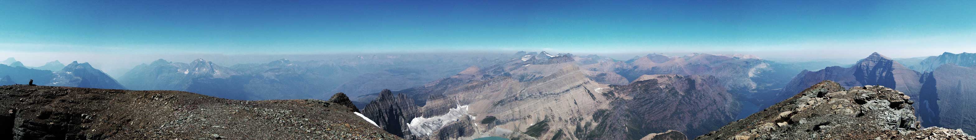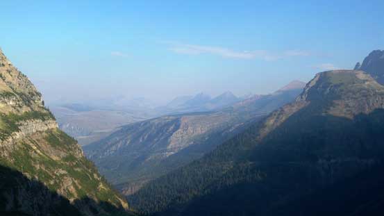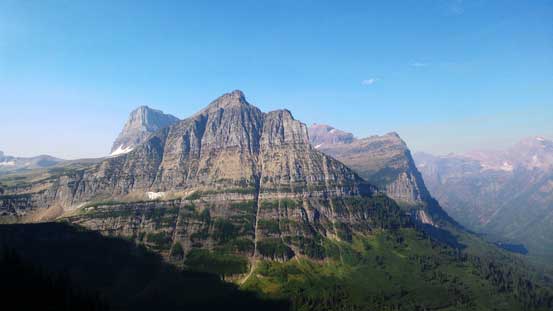 Mt. Gould is not nearly the highest in Glacier National Park, Montana, but it’s one of the higher peaks surrounding Logan Pass – the core tourism area in this Park. It’s one of the major objectives in this 3-day visit to the far south by Mike and I so we saved it for the day with the most guaranteed weather (Wednesday). However, the weather played a joke with us as a thick layer of smoke blew in from west obscuring most of our views. But nonetheless it’s a great introductory to Logan Pass. The Going-to-the-Sun Highway brought us more than 1000 vertical meters from West Glacier to the pass and by the time we started our day we were already near treeline.