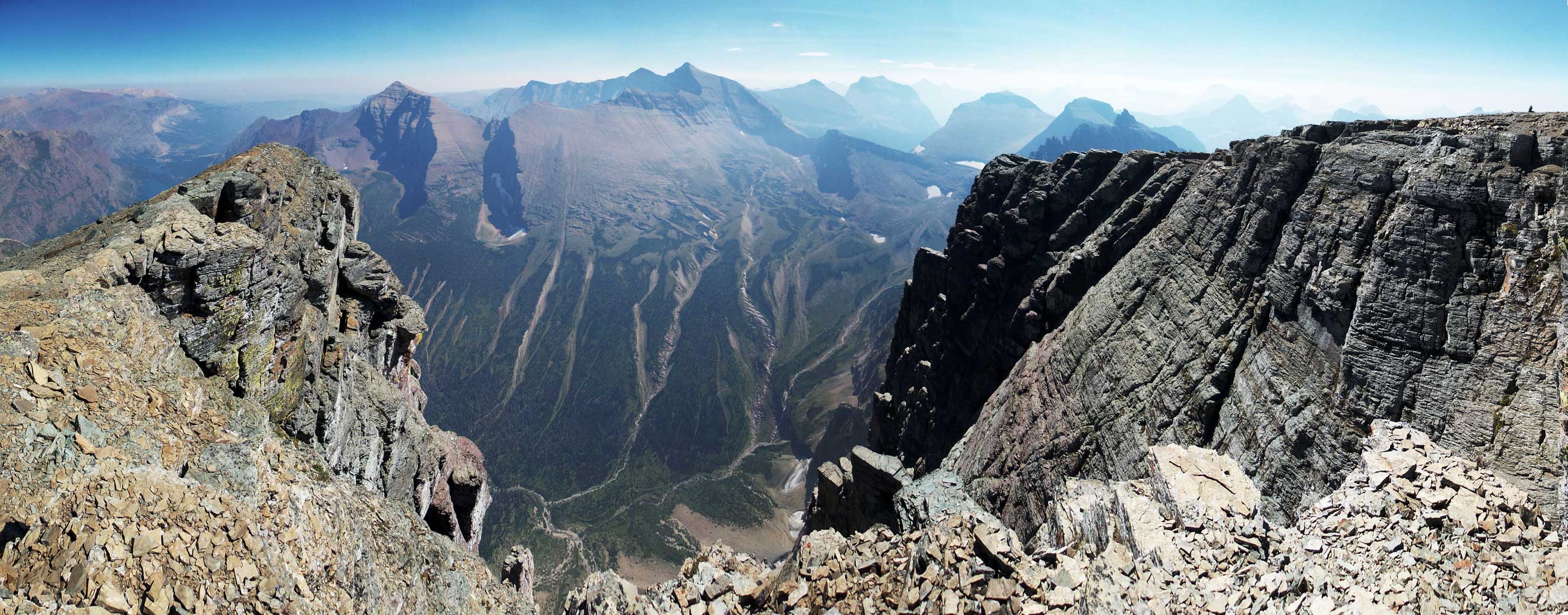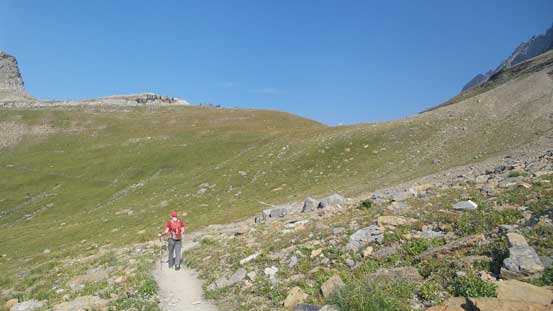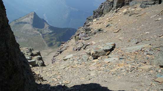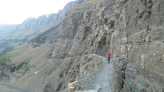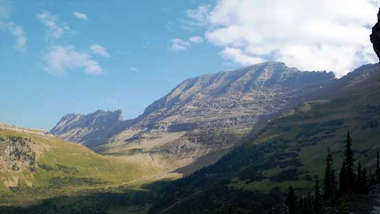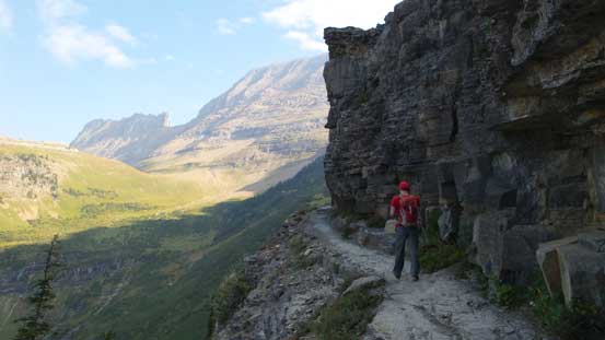 We had an ambitious plan to bag Gould and Reynolds in 1 day so cruised down the Highline Trail on a fast pace, passing a hundred tourists along the way.. This 6-km trail was indeed very scenic and brought us from Logan Pass to the broad saddle between Mt. Gould and Haystack Butte in just over an hour, while (sort of) maintaining elevation. There were quite a few up-and-downs but not too bad and near the saddle we followed a wide switch-back up.