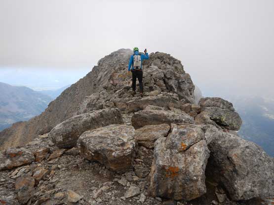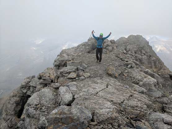 Me dashing across the summit ridge. Photo by Adam W.