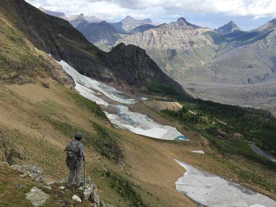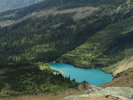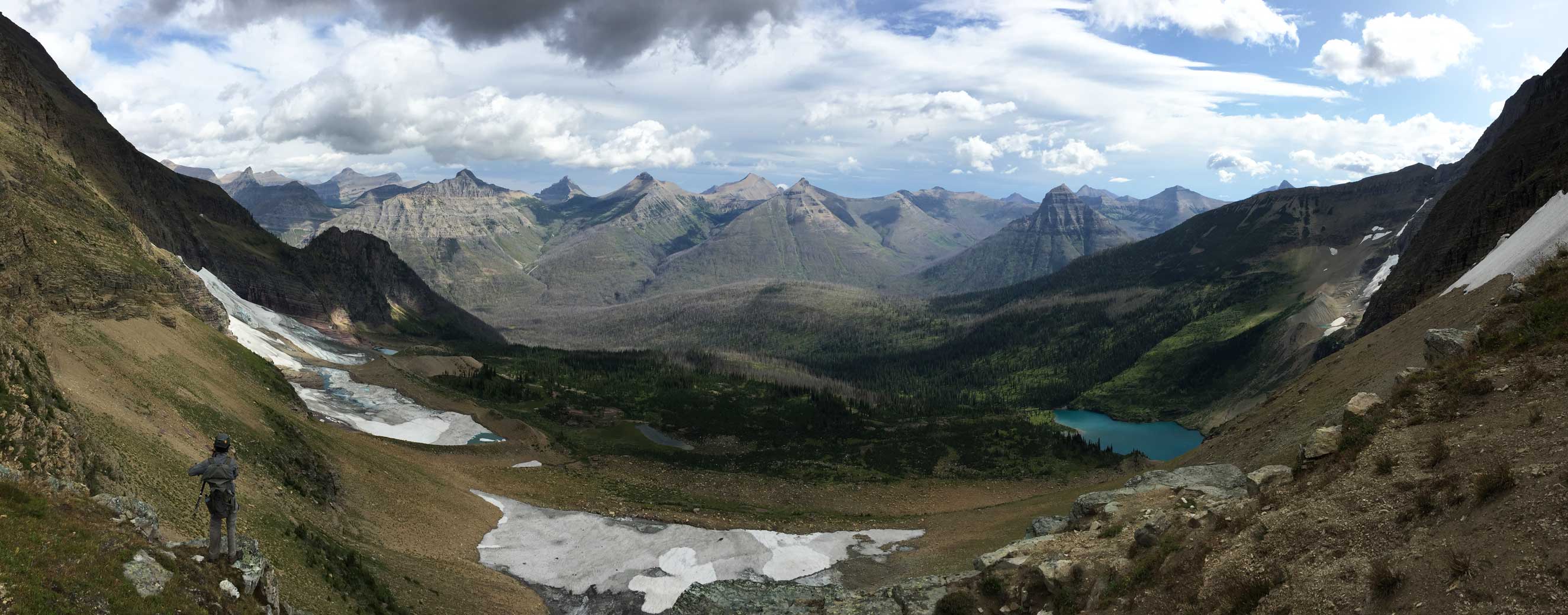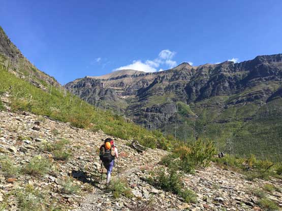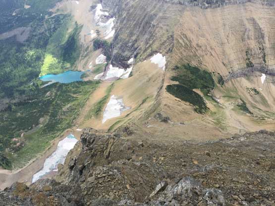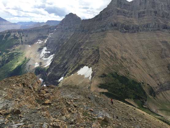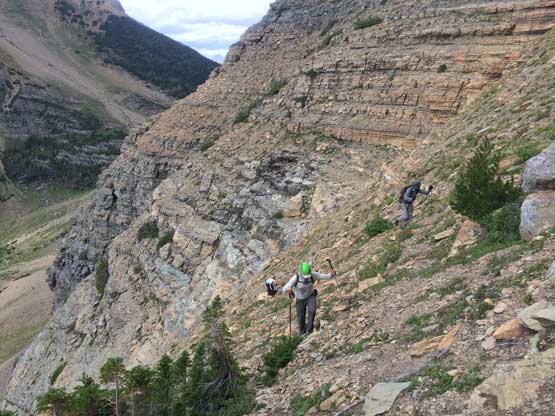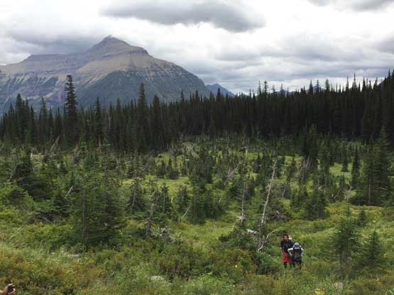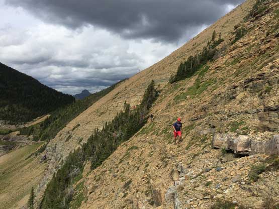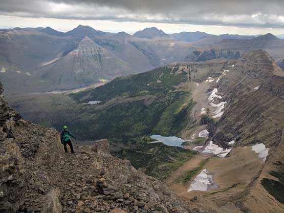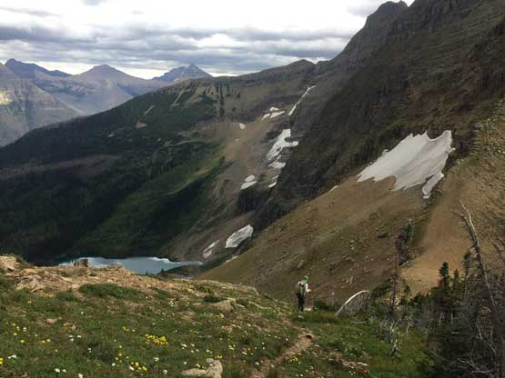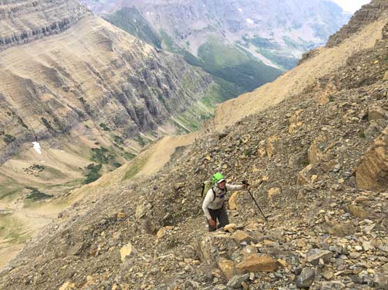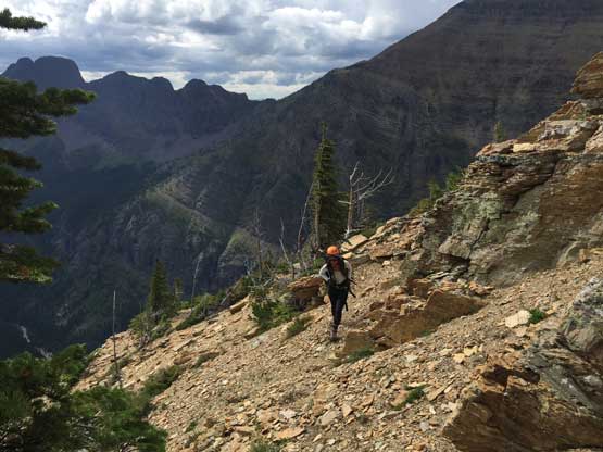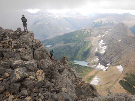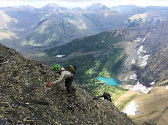 • Greg Slayden et al. had pioneered a new route from Two Medicine Lake on the east side of the park over the continental divide. Their route avoids the river crossing as well as the Mt. Pinchot traverse, but adds a “class 4 crux”, considerable amount of elevation and a lot more bushwhacking.