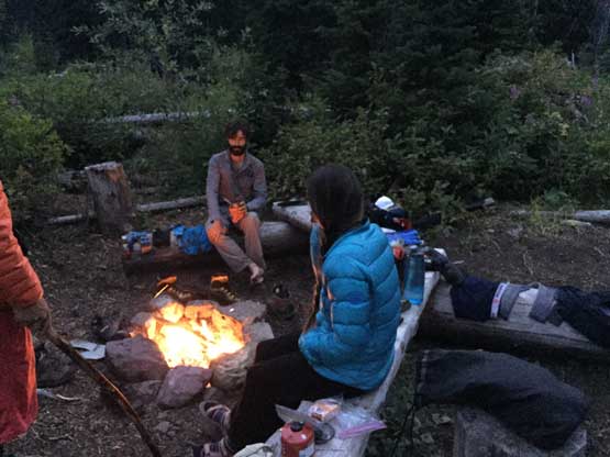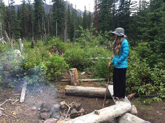 We made to Beaver Woman Camp. The campfire’s already started.
