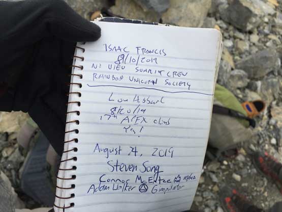 The register entry to prove we indeed made the summit…