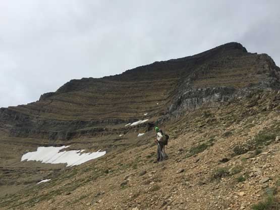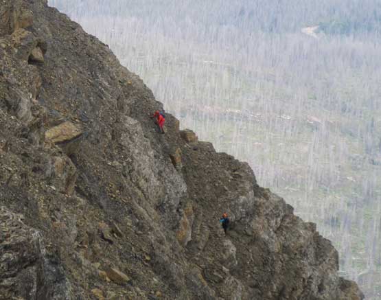 Starting the 800 m scramble on SE Ridge of Mt. Stimson