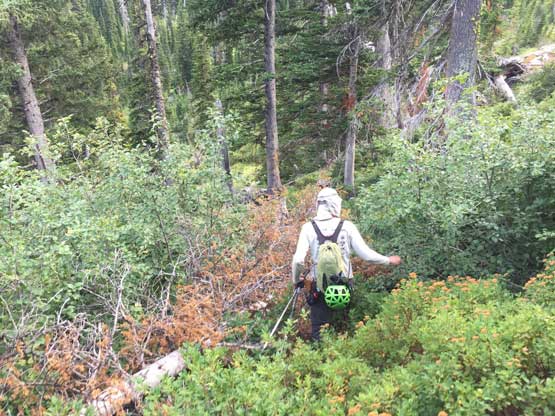 Short but dense “BW4” bushwhacking above Buffalo Woman Lake
