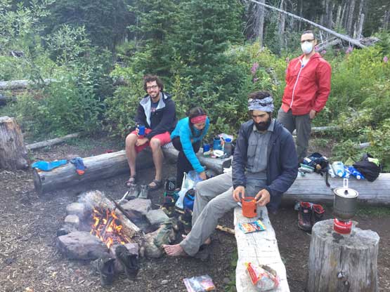 The traverse back across Mt. Pinchot was again, tedious but not difficult. The rest of the descent back to camp was also not very pleasant because of some compact scree and bushwhacking. Adam took over the lead here through the brushes as my brain needed some rest time. This evening we again, set up a fire for fun, but didn’t stay up long.