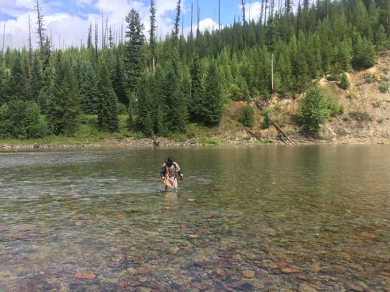 The group fording Middle Fork Flathead River.