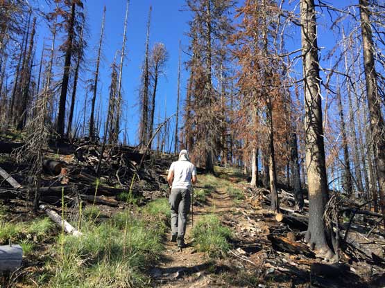 The weather appeared stellar on the first few days of our trip so to fully utilize the window we agreed to squeeze one summit in Day 1, and that meant we had to leave Seattle at 6:30 am which further meant I had to wake up at 4 am to drive south. The morning was very tiring because I attended a social party the day before and felt sick from the food and loud voices, but made it happen nonetheless. I parked my Taco in Adam’s place and slept in Adam’s Subaru for most part of the driving day. The drive was boring and long and the communities in northern Idaha and NW Montana were very rural with minimal facilities. We drove straight to the trail-head on windy and steep, but easy logging roads. I was impressed by the quality of roads in this part of US. It seemed like the government or logging company really does their job keeping the roads drivable for most recreation vehicles. The logging road navigation was done by Google Map app as well as my Gaia app for a secondary source and I have included this driving portion in my GPX file.