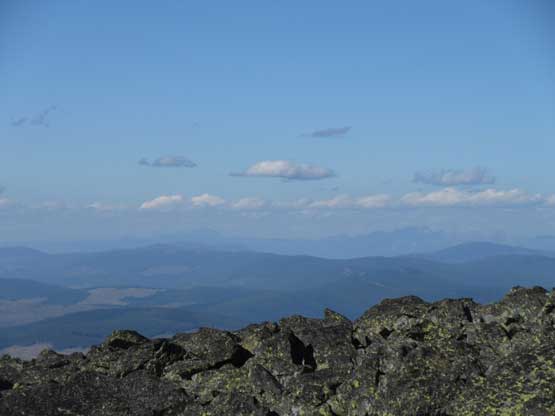From the trail-head the ascent was about 5 km each way with over 500 m elevation gain, all on a maintained trail. The hike was very boring with minimal views through the thinning forest, but near the summit we broke out of the forest with expansive vista towards all direction. The mountains in this region are more “hills” than “peaks” but I was happy to see something different nonetheless. I could point out Mt. Fisher way the hell to the NE in Canadian Rockies which is the closest peak I’ve bagged, over 100 km away.