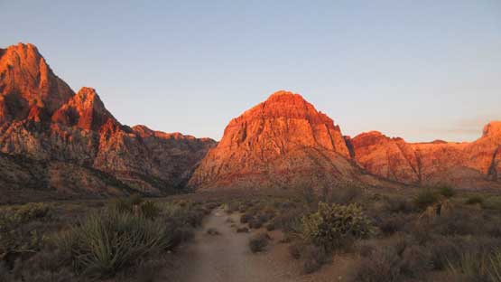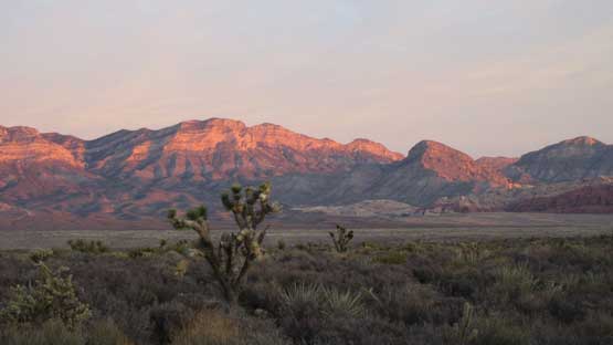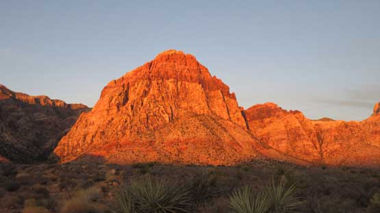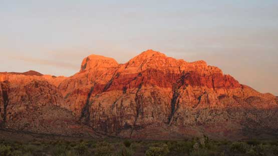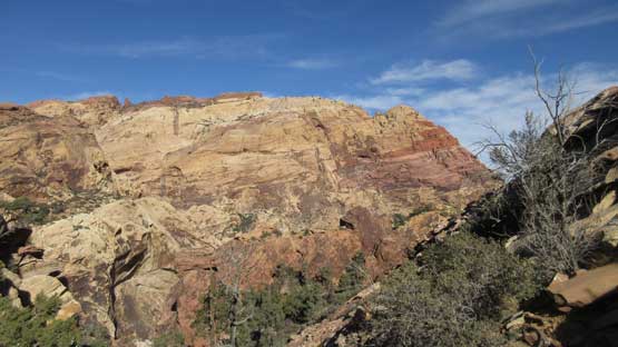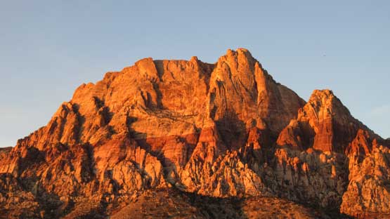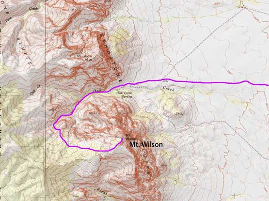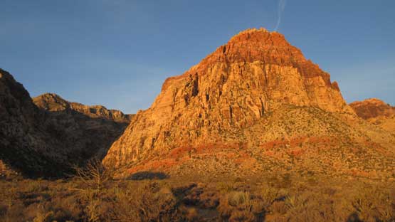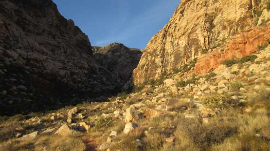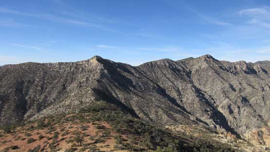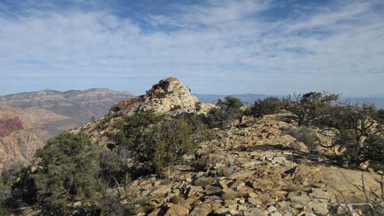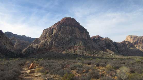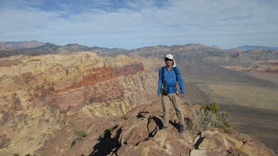 As far as I know there are at least half a dozen “Mt. Wilson”s across the western North America so not to be confused with the other ones I have to point out at first, that this “Mt. Wilson” is located just to the west of Las Vegas and is the highest point in Red Rock Canyon NCA. It boasts a shear east face that attracts almost everybody visiting the area but the west side is nothing fancier than a gentle walk-up on forested slopes. This isn’t a “prominence peak”. And thank to the proximity to Las Vegas’ urban development Mt. Wilson offers countless routes but from a scrambler’s perspective only two make sense. The standard route goes up First Creek Canyon (3rd class) from the south while a more interesting and direct option goes up Oak Creek Canyon from the north (4th class).