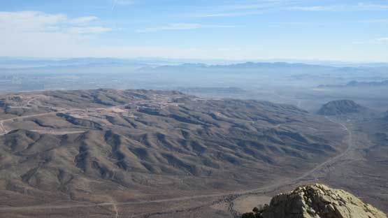 The rib route indeed worked out and the next thing we were traversing the high vegetated plateau towards the summit area. There’s some long side-hilling on off-trail terrain but other than paying attention to the cactus there’s nothing worth noting. The summit “nipple” was longer and farther than it looked and once there we were surprised to see another taller true summit farther behind. Getting to the true summit required some brief elevation loss but the view was just as expected, mind-blowing towards all direction. The only disturbing sight was Blue Diamond Mine just across the valley but I guess there’s not much we could have done to stop that kind of development.