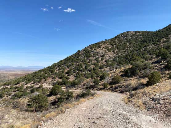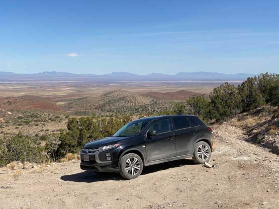 “Truth or Consequences” is a weird name of a city so I expected some weird feelings there. The city turns out to be quite small and the streets layout and traffic pattern feels exactly like the villages in Mexico, just not nearly as busy. A dozen or so stop signs later I exited the city onto country roads with hardly any traffic. The dirt roads were all labelled on Google Map so the navigation to Timber Mountain was not challenging, but boy it was a long one. Eventually I turned westwards towards the mountain. I was hoping to drive close to the summit but as soon as the road became steep I had to stop and park. It was here that I learnt the rental Mitsubishi wasn’t even an AWD vehicle. There’s enough clearance but the 2WD sucked and couldn’t even handle the first steep hill. I was stubborn enough to try at least 4 times to get the vehicle up the first hill and eventually succeeded. But then I turned around and parked.