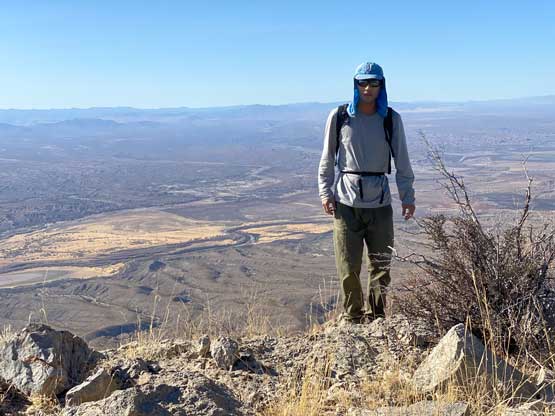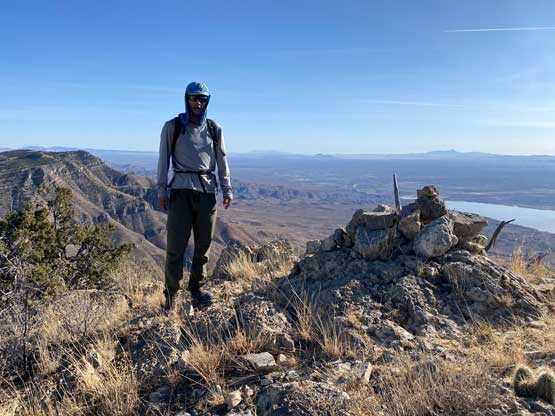 Another photo of me on the summit. The register is rich with peakbagger’s names