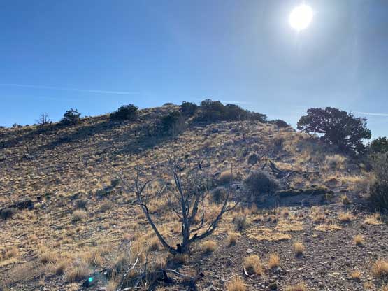 Timber Mountain is the highest peak in Caballo Mountains to the south of the city of Truth or Consequences in New Mexico. This peak boasts over 800 m prominence and that’s the sole reason why it caught my attention. The ascent is nothing fancier than a “walk” on roads and open country, but the access requires some lengthy driving on dirt roads with some remote feeling. I finished Organ Needle earlier in the morning and immediately decided to check out this peak in the afternoon. I was planning to drive back northwards on I-25 anyway.