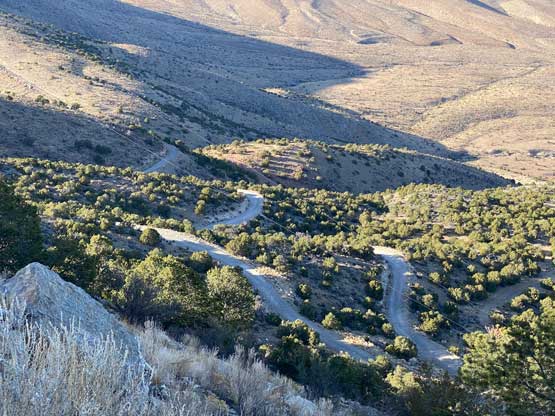 On the descent I took a short-cut across the east slopes of the false summit to avoid the elevation regain, and then easily plodded back to the car. The round trip distance was almost 10 km so this peak was definitely not that much of a “dumpster” as I thought. Once back to Truth or Consequences I found another Mexican restaurant for dinner but then I got an email saying my Alaska Airline flight to Seattle was cancelled due to strike. That really messed up things as I had to extend the car rental by a day. I called Alaska Airline (1 hour or wait) to get a full refund and meanwhile I booked a new flight with Delta. Once everything’s set I drove northwards again and found a Rest Area to park and sleep.