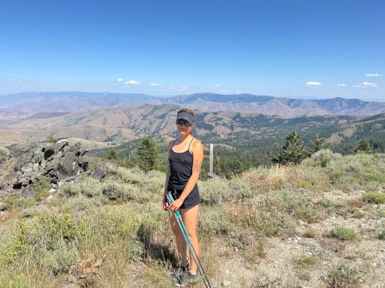 Big Lookout Mountain is one of the prominent peaks in the NE Oregon not far from the border with Idaho. This one boasts over 900 m prominence. The ascent is nothing fancier than a “walk up” and in some days the summit spur road is not gated that one could drive (4×4, high clearance) to the very summit. The gate was unfortunately locked when Erica and I went. The walking distance was less than 2 km each way but this “ascent” would still require more than 3 hours round trip from I-84 considering the long drive.