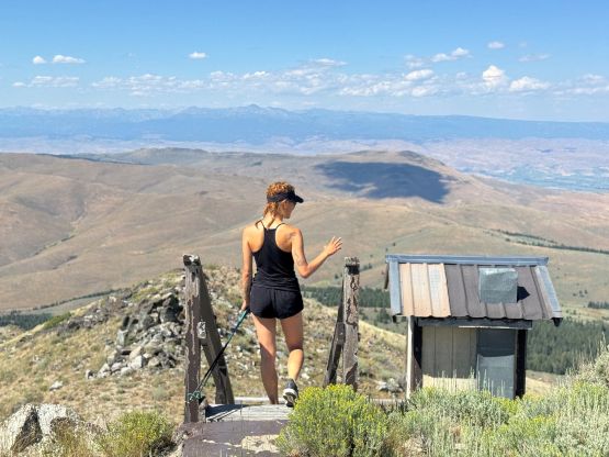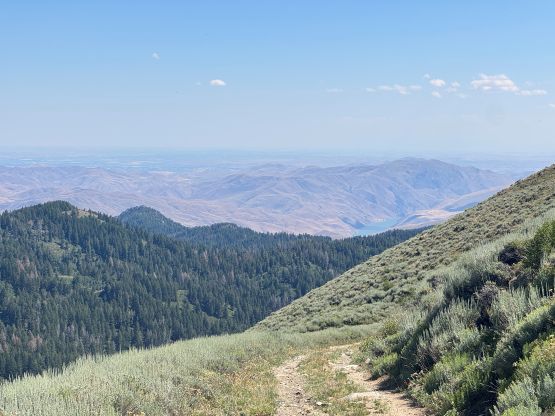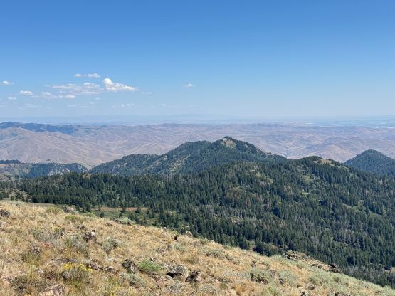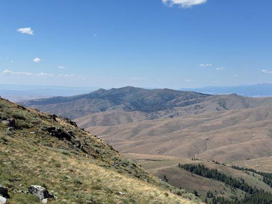 The walking up the summit “spur” road was thankfully very scenic, and overall I wasn’t regretting walking it. After one or two switchbacks we were in the open and the views were quite great. I was surprised to see such desert landscape in this part of Oregon/Idaho as the elevation is quite high, but I guess this area doesn’t see much precipitation at all. There’s even a lookout structure on the summit but we didn’t bother to check thoroughly out.