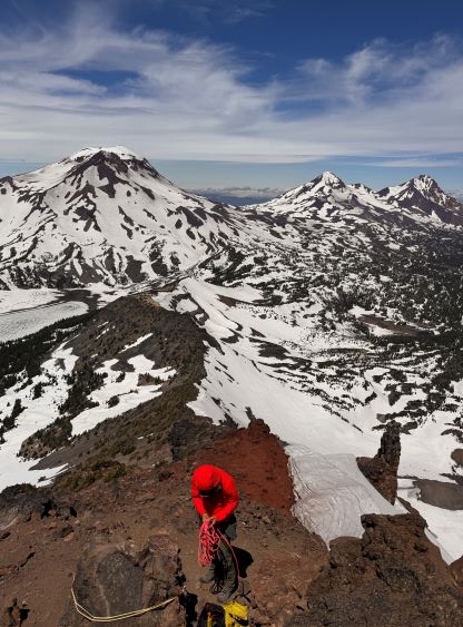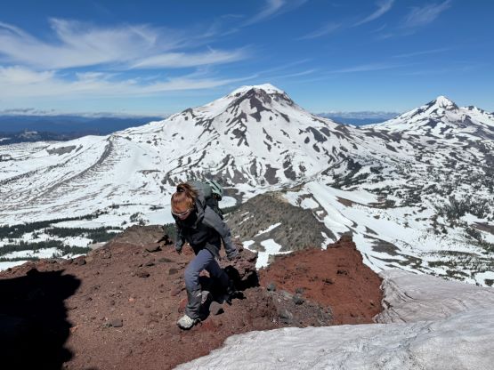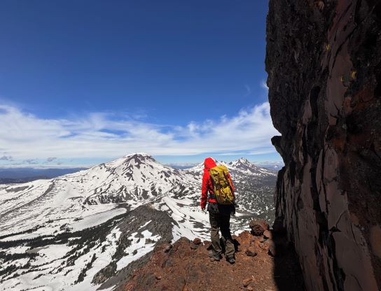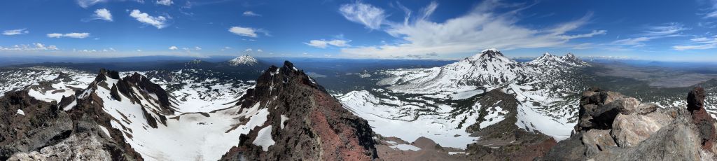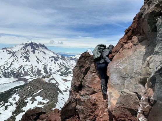 Broken Top is one of the more rugged volcanoes in the Three Sisters Wilderness of central Oregon. It’s right next to the Three Sisters but still boasts over 600 m prominence. The easiest route is the NW Ridge and requires some exposed scrambling near the summit and some parties may prefer using a rope. I had done the Three Sisters back in 2019 and I mostly reserve the peaks in this area when weather is bad elsewhere closer to home. Erica and I were planning a 4-day trip in the middle of the week and the weather forced me to think about the Oregon volcanoes as this was the closest spot with some guaranteed hours of sunshine. It’s been a few years since I visited the area so I was also keen to come back. I had 4 volcanoes to complete the 20 peaks on that “Cascades Volcanoes Peak Pin” list so I laid out a hasty itinerary to include all 4 of them, and this meant we had to push ourselves on the driving sections. The first day (Wednesday) had some high winds but it made sense to do Broken Top first as this would give the easiest itinerary from the driving perspective, so I triple-checked the weather to make sure the wind wouldn’t be too severe to prevent the summit. There were some red tapes so the day pass permit was obtained two days before the trip, and I would also carry a 20 m rope for Erica not because it was really needed but rather to show her some rope work techniques.