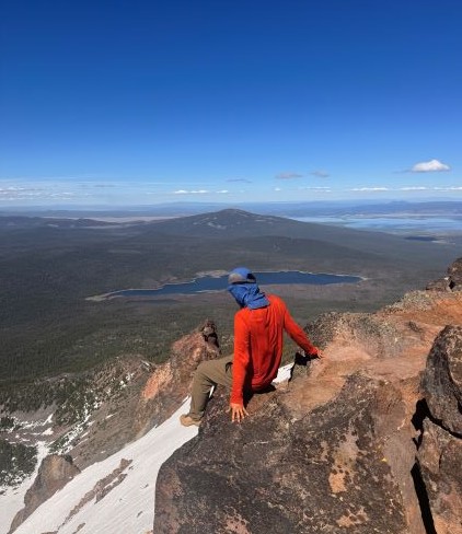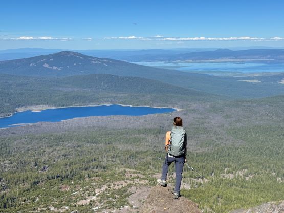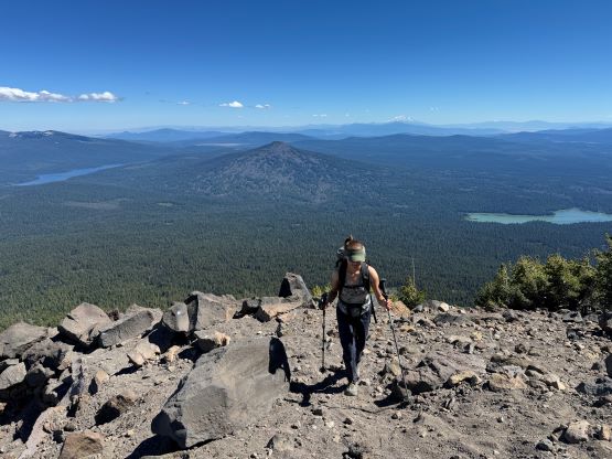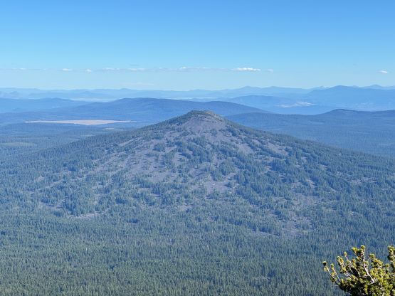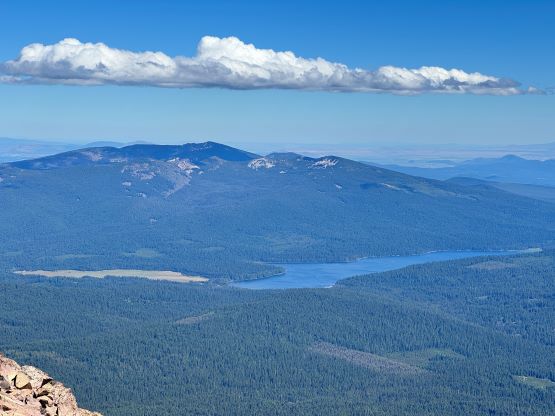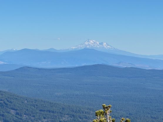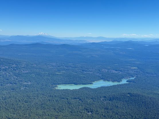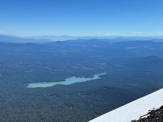 It was eventually the time to start descending, and I found the descent to be much more confusing. The terrain forced me to descend towards skier’s right away from the ridge and I had to consult with the GPS multiple times to correct our bearing. There were infinitely many paths though, and I do believe they would eventually all converge. The worst was still the final 2 miles of the distance, as the mosquitoes were even worse now. The first thing we did after getting back to the trail-head was to put on the jackets and the next thing was to hastily get into the car. We did the change of cloths in the car and then drove away. The next stop was somewhere along Highway 97 for some grocery, and then we drove further north to find a car-camping spot away from the streets. Our final objective on the following day would be Mt. Bachelor and that would help me finishing the “Cascade Volcanoes Peak Pin” list.