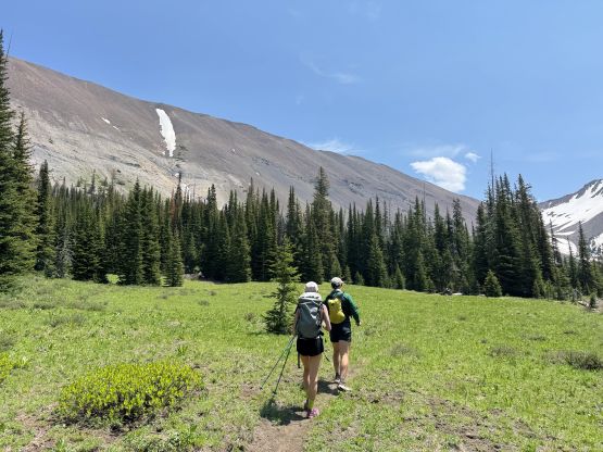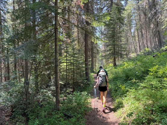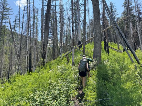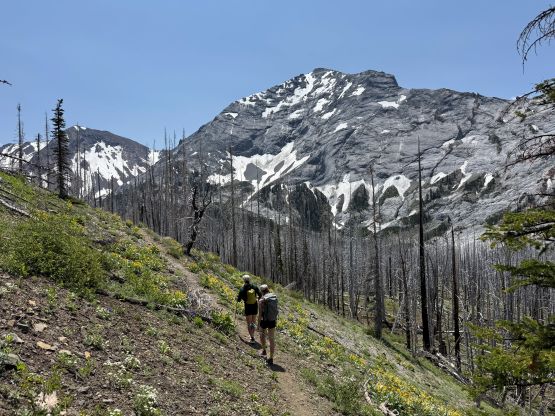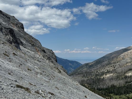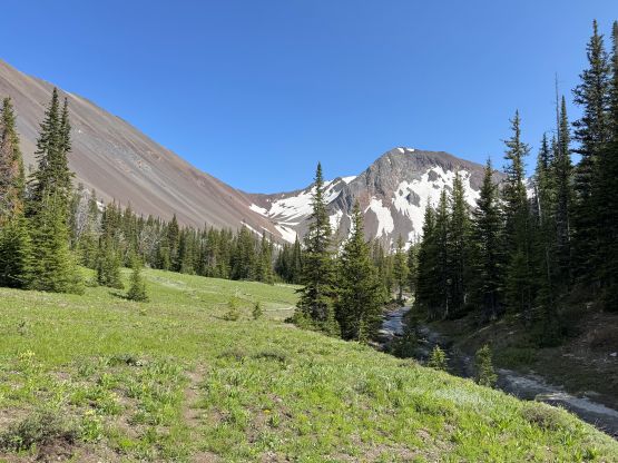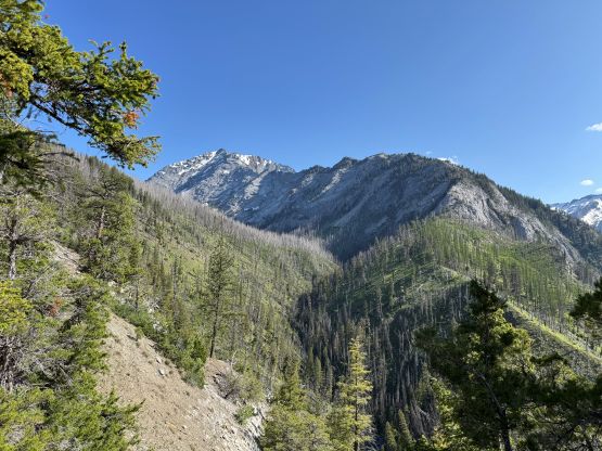 There’s little worth noting about the ascent itself as this was essentially just a long ass plod up a fairly well-maintained trail. The final 500 m elevation gain would be on some steep and loose terrain but the path was still obvious and there’s minimal scrambling required. The first few kilometers was to dash up the trail beside Hurricane Creek with minimal elevation gain. It was kind of annoying especially on the way back. We then crossed Hurricane Creek on a downed log and picked up the trail on the opposite side. The next stage was a steep grunt in some hot weather, along “Thorp Creek Trail” labelled on the Gaia map. The trail quality was nice but I was feeling the lack of energy due to the illness. I made Seb and Erica wait for me for a few times but there’s no way I could go any faster.
