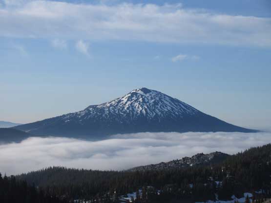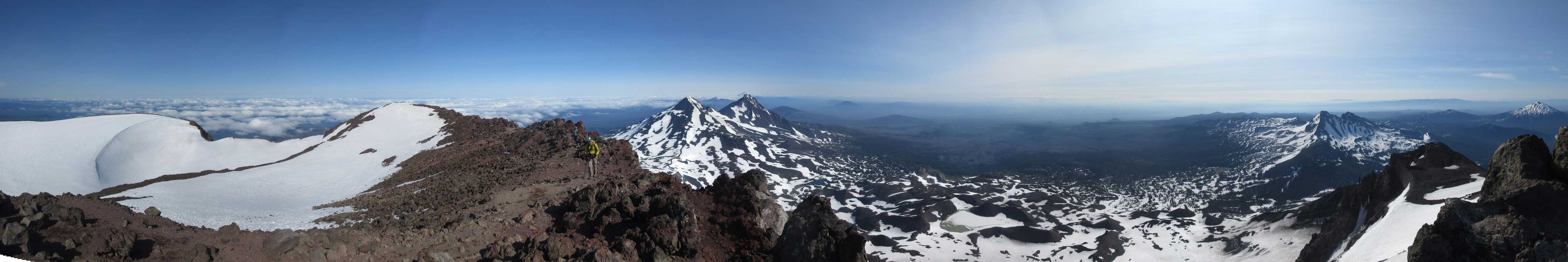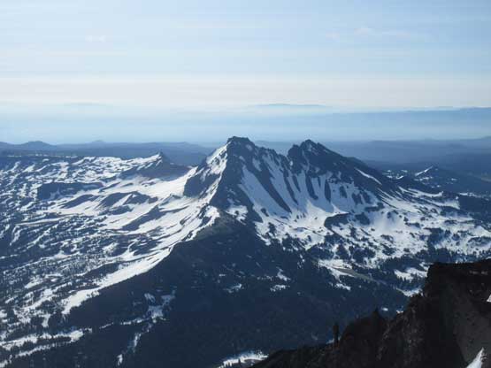 South Sister is the highest of the Three Sisters volcanoes in central Oregon and also the easiest among the three. The standard south side route is nothing but a class 1 plod on a trail/path or snow in early season and can be done easily in half a day by fit parties. Too bad the access road to Devil’s Lake trail-head isn’t plowed in winter as otherwise this would also be a classic ski mountaineering ascent. Alex and I had ascended the more-difficult North Sister and Middle Sister in 11.5 hours in the previous day. The night we car-camped at South Sister trail-head.