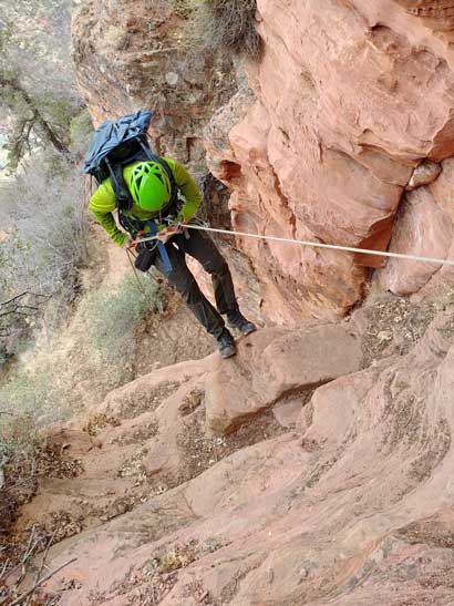 Jake rappelling off the “dihedral crux”